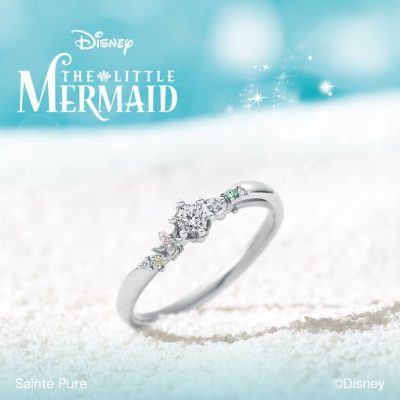 アリエルのヒレや髪の揺らぎや水の動きを感じさせるウェーブフォルムに、ダイヤが泡のようにキラキラと輝くデザイン。
