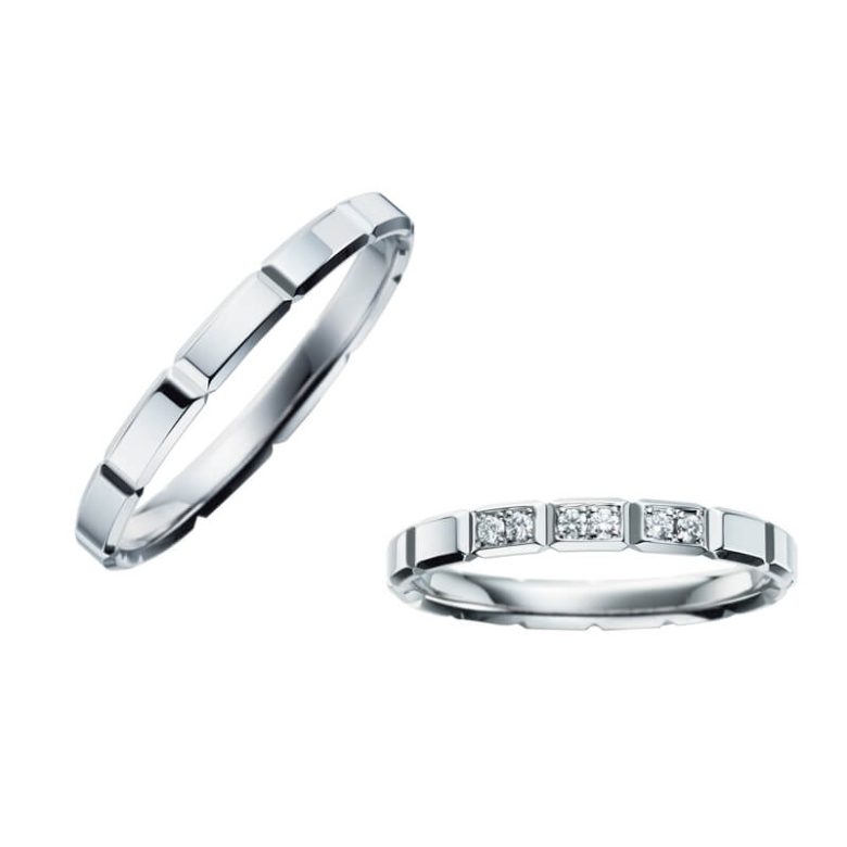 特徴のあるボックスカットに、6石のダイヤモンドがセッティングされた華やかなデザイン。