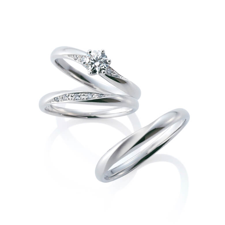 やわらかいウェーブラインと程よい華やかさがあるセットリング。優雅な印象を与えてくれます。