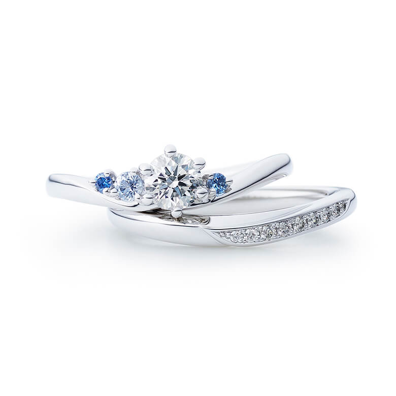 結婚指輪のメレダイヤモンドは、水面の輝きを表現しています。