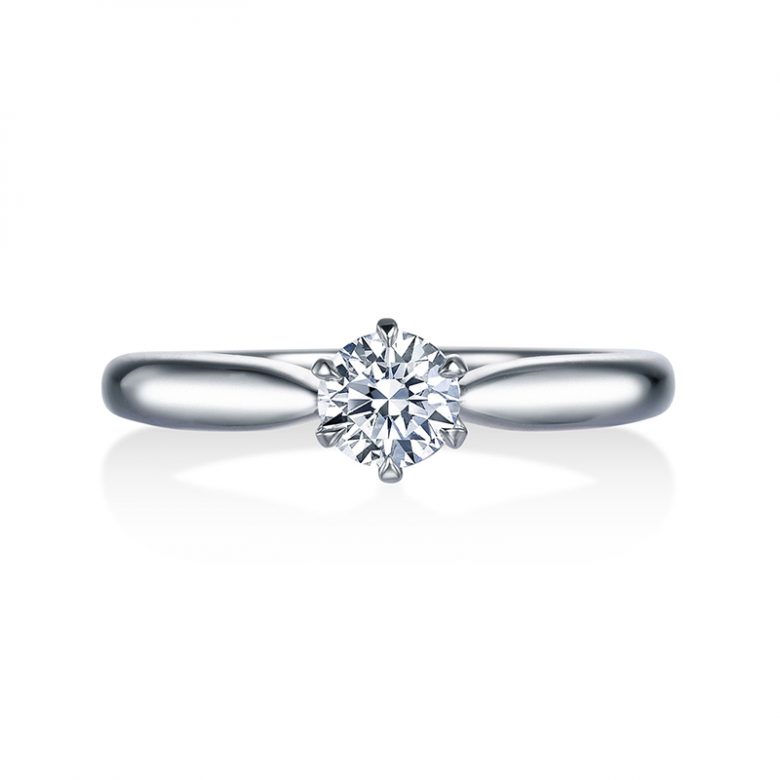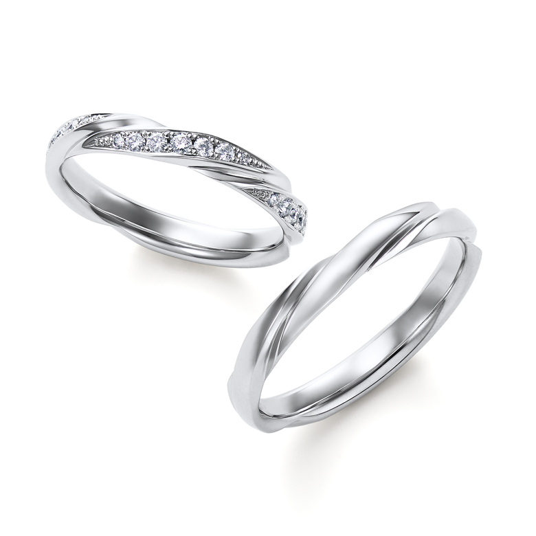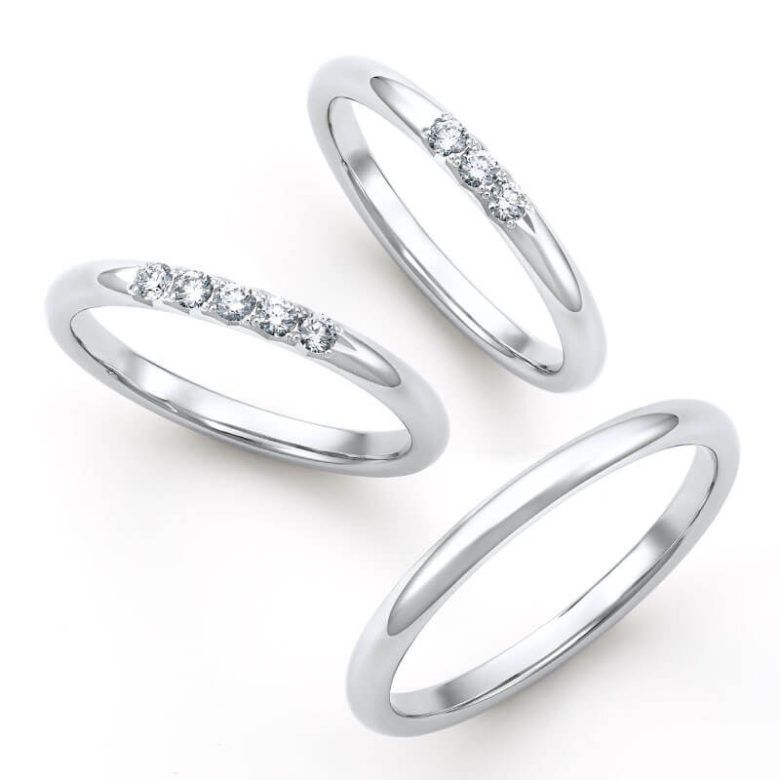 華美すぎず、流行に左右されない洗練されたデザインは長く身に着けるブライダルリングとして理想的。
