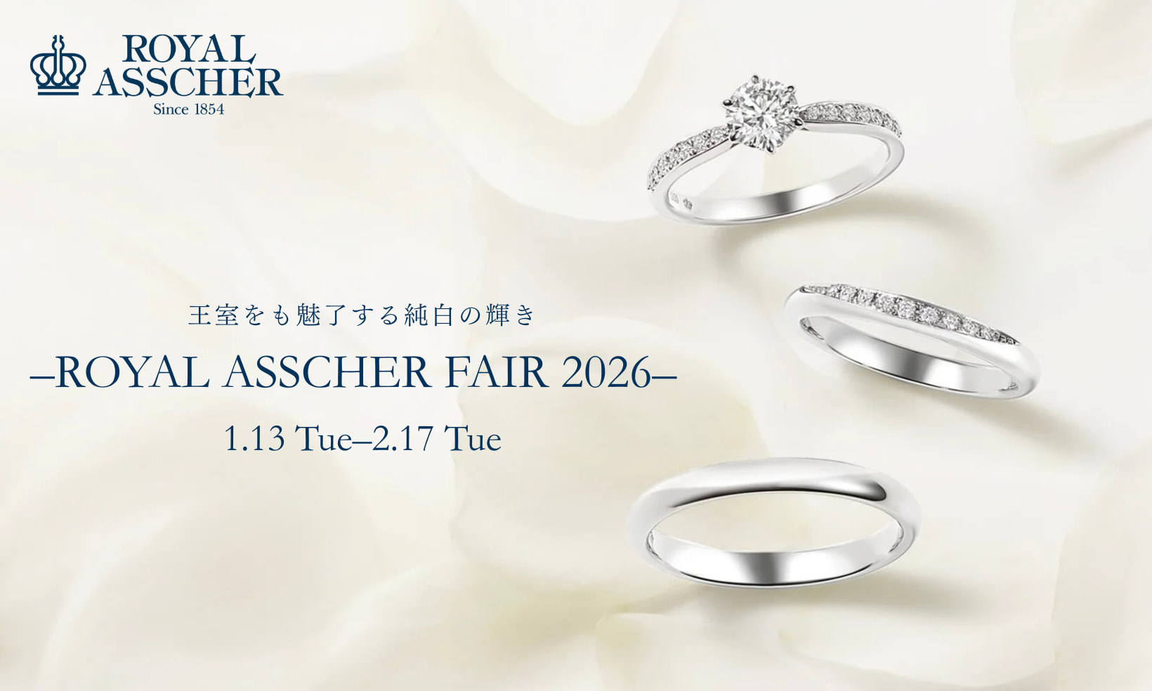 純白に宿る、ロイヤルの証。王室に愛された高貴な輝きが、おふたりの始まりを彩ります。