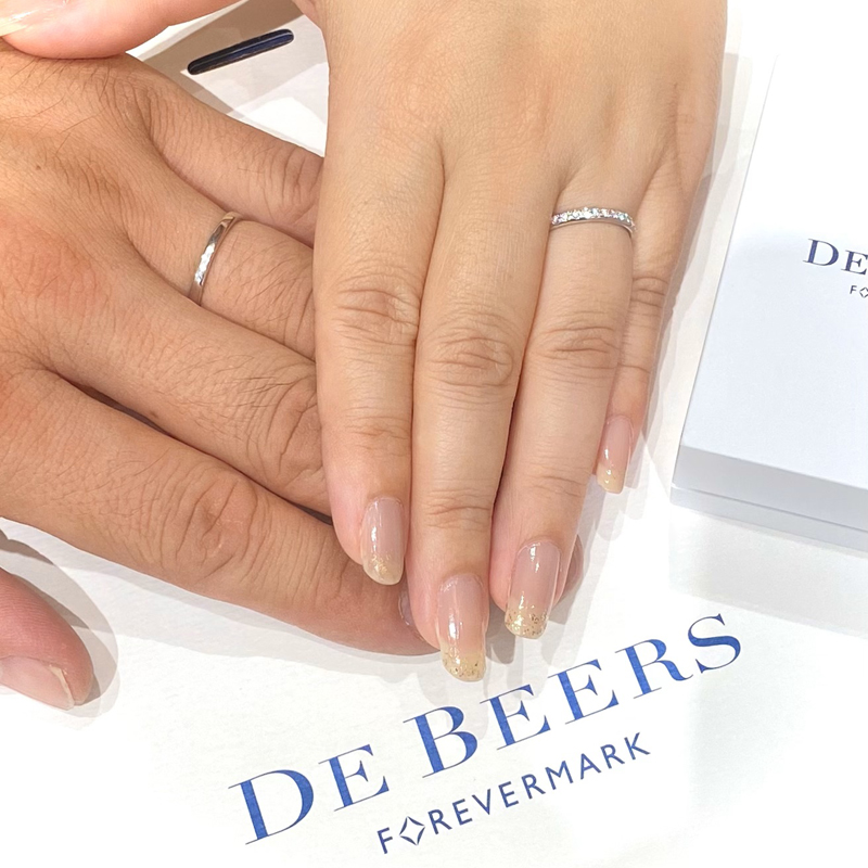 男性様はエッジの効いたフォルムが都会的な印象のフラットバンドをお選びになられました。