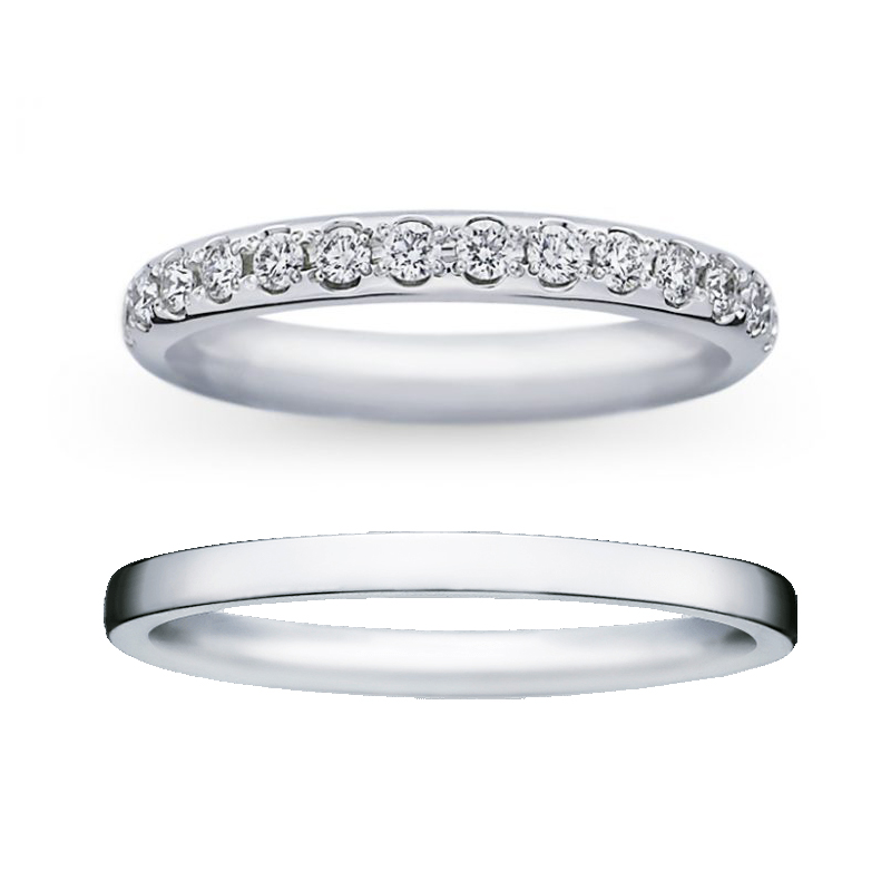 女性様はダイヤモンドの華やかな輝きを感じられるハーフエタニティリングを。