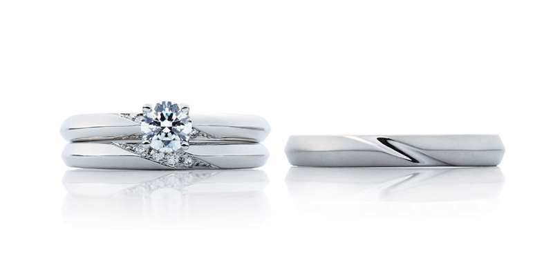 流れるように中央にセッティングされたダイヤモンドは、一筋の幸福へと続く光を表現。